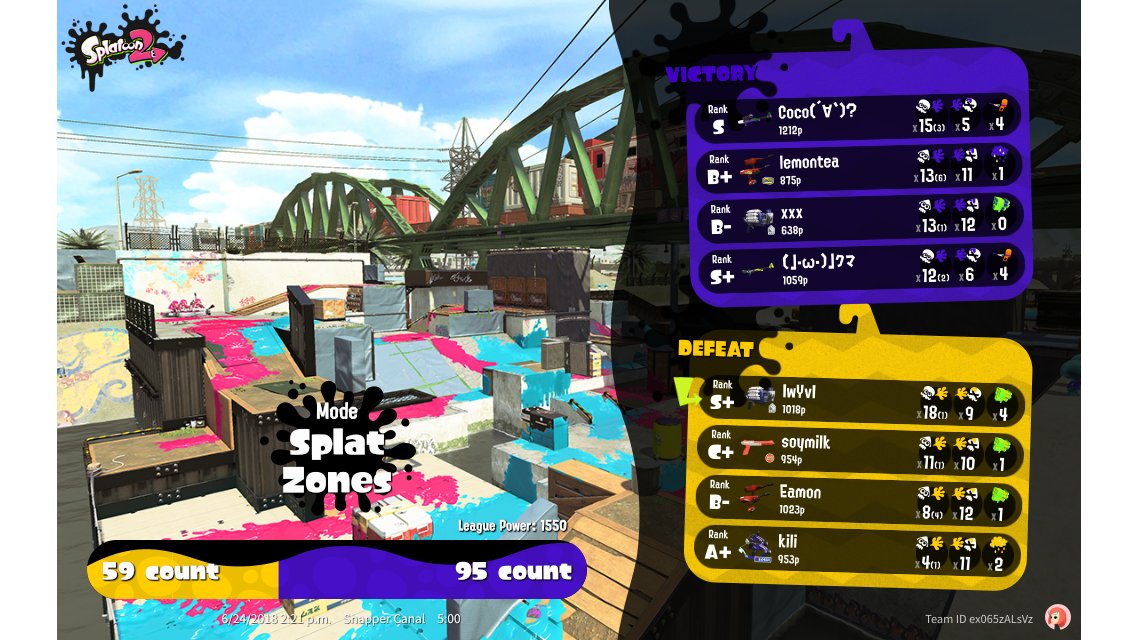 | Mode | Splat Zones - League Battle (Twin) | ||||||||||||||||||||||||||||||||||||||||