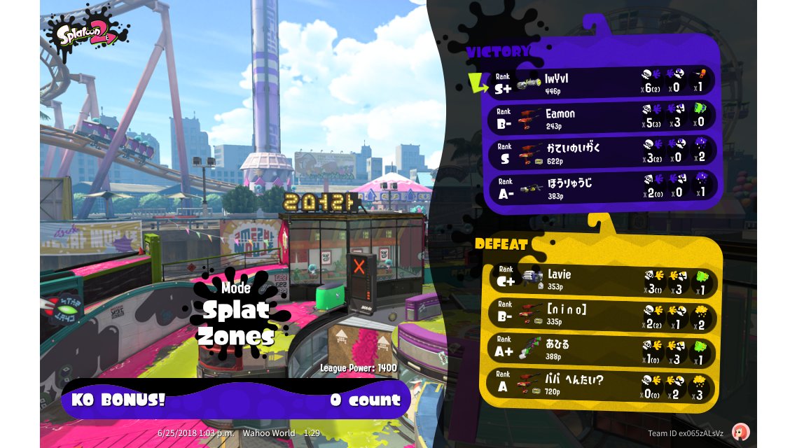 | Mode | Splat Zones - League Battle (Twin) | ||||||||||||||||||||||||||||||||||