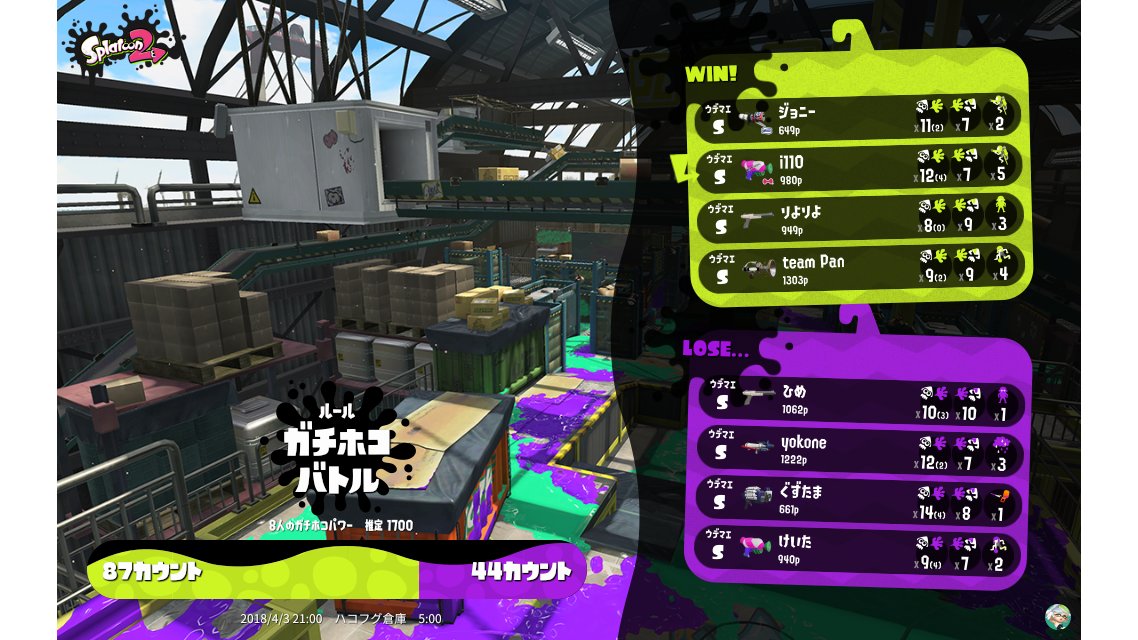 | Name | Weapon | Level | Rank | Inked | k+a/sp | k/d |