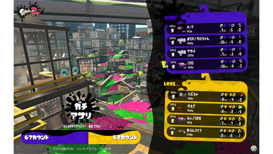 | Name | Weapon | Level | Rank | Inked | k+a/sp | k/d |