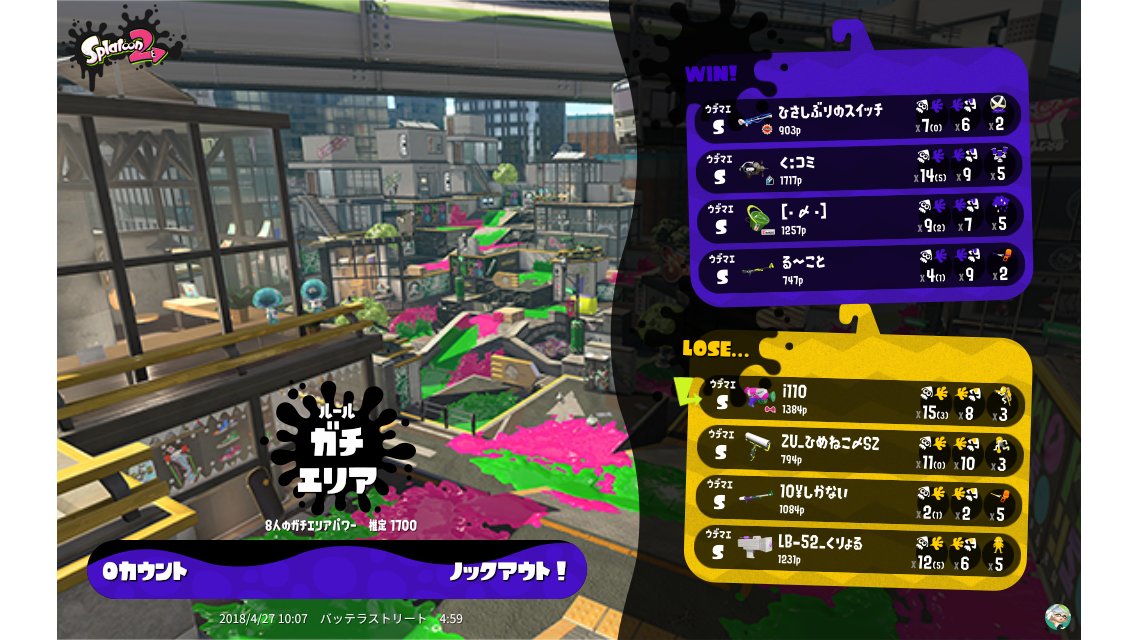 | Name | Weapon | Level | Rank | Inked | k+a/sp | k/d |