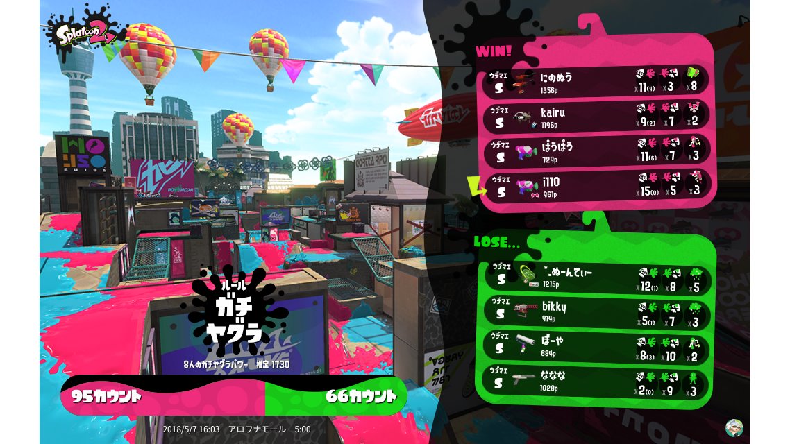 | Name | Weapon | Level | Rank | Inked | k+a/sp | k/d |