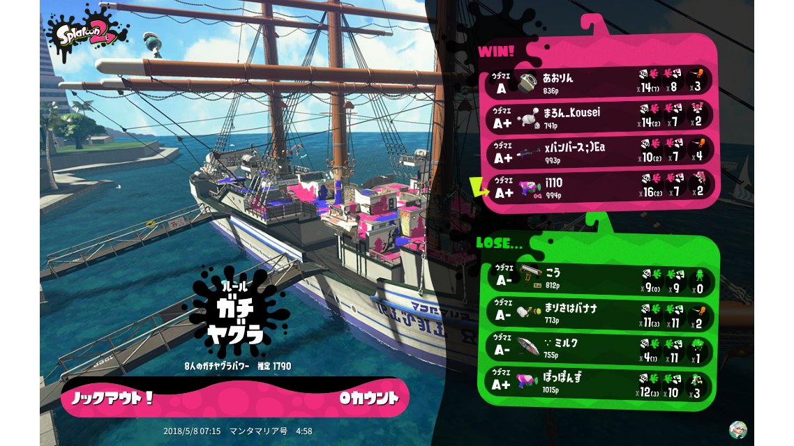 | Name | Weapon | Level | Rank | Inked | k+a/sp | k/d |