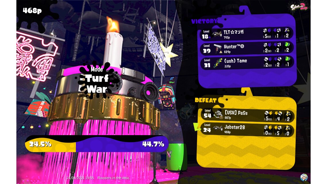 | Mode | Turf War - Private Battle | ||||||||||||||||||||||||||||