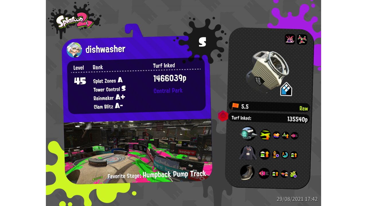 | Weapon | Sloshing Machine Neo ( Point Sensor, Splat-Bomb Launcher) | ||||||||||||||||||||||||||||||||||||||||||||||