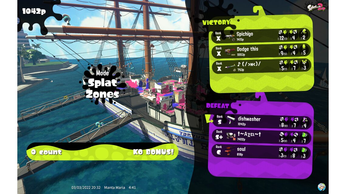| Mode | Splat Zones - Private Battle | |||||||||||||||||||||||||||||||||||||
