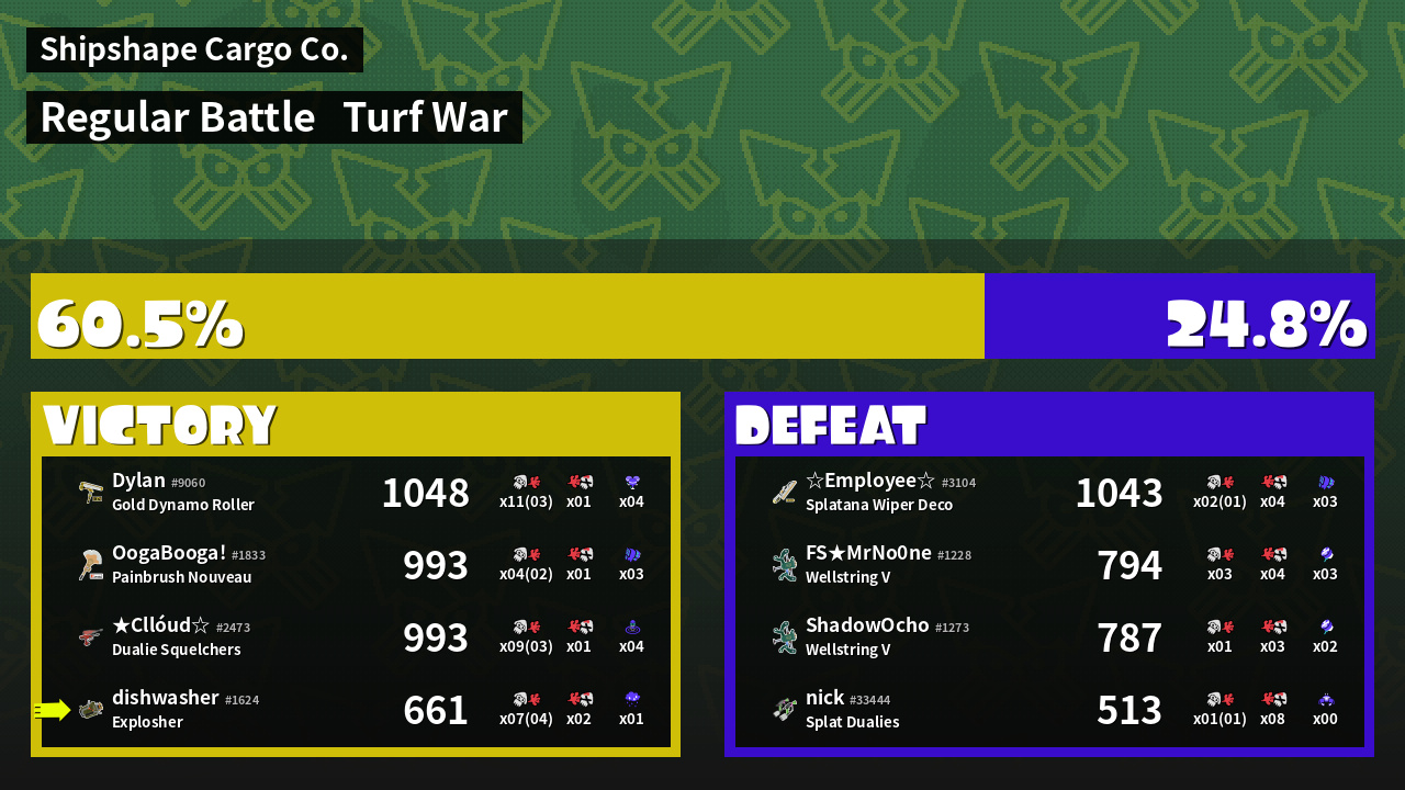 | Medals | #1 Super Jump Spot #1 Splat Assister #1 Ground Traveler | ||