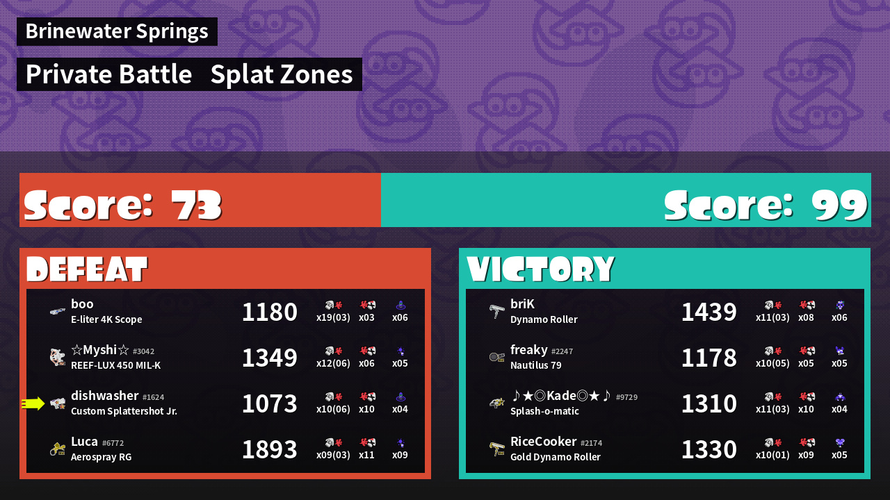 | Mode | Splat Zones - Private Battle | ||