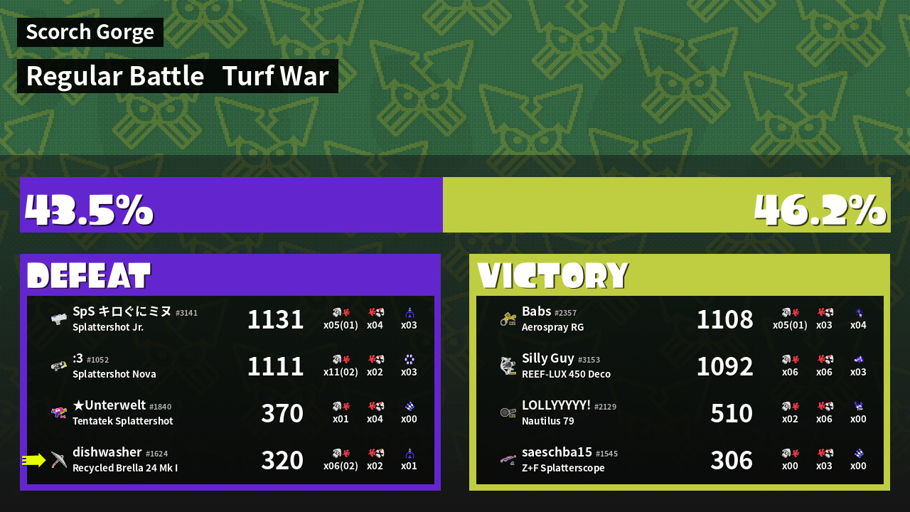 | Medals | #1 Splat Assister #1 Ground Traveler #2 Overall Splatter | ||