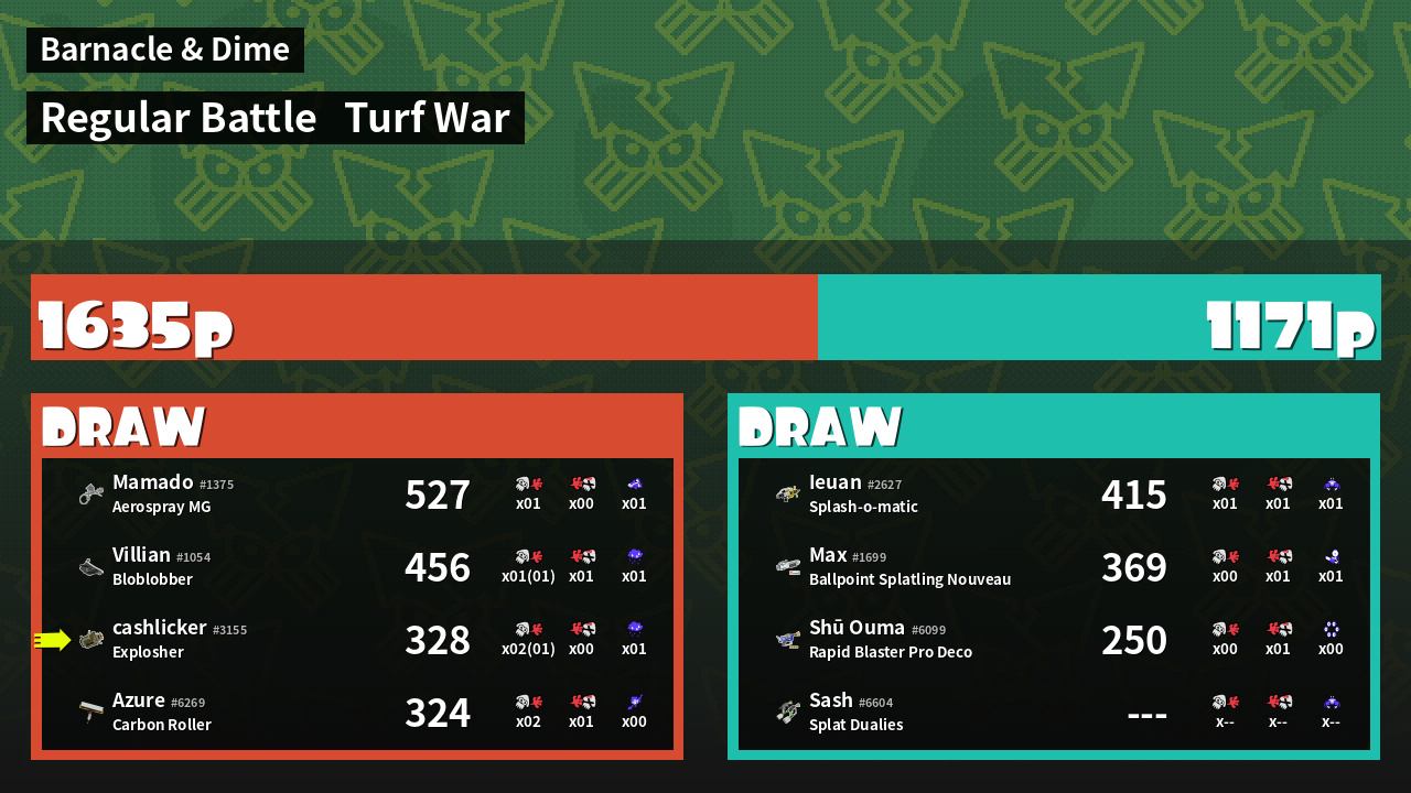 | Weapon | Explosher ( Point Sensor / Ink Storm) | ||