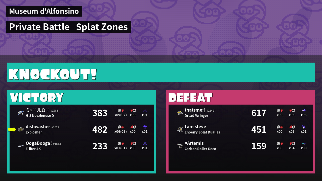 | Mode | Splat Zones - Private Battle | ||