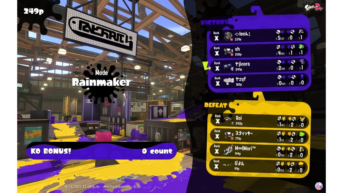 | Name | Weapon | Level | Rank | Inked | k+a/sp | k/d |