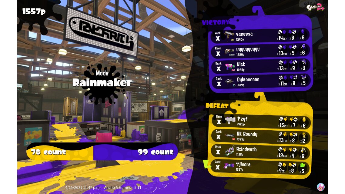 | SplatNet Battle # | 17,630 | |||||||||||||||||||||||||||||||||||||