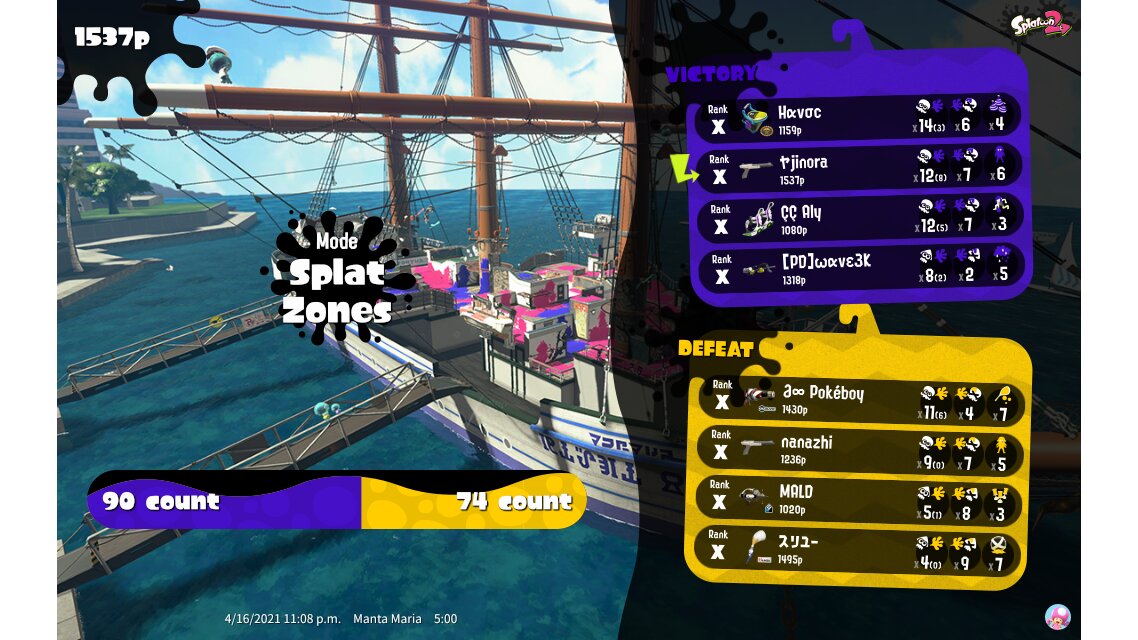 | Mode | Splat Zones - Private Battle | |||||||||||||||||||||||||||||||||||||||||||