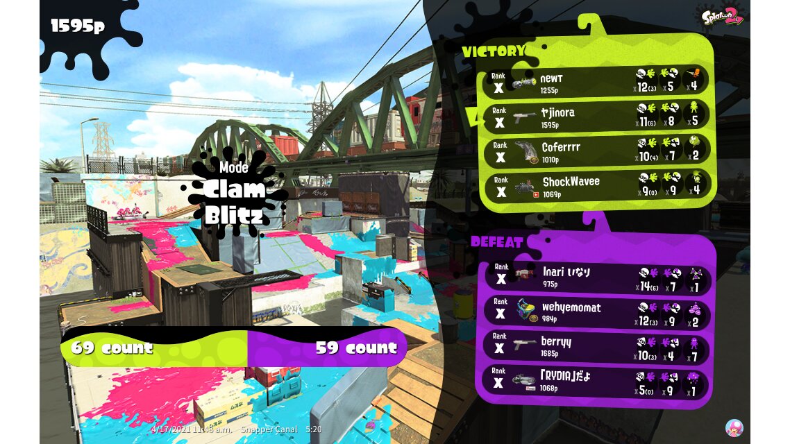 | Mode | Clam Blitz - Private Battle | |||||||||||||||||||||||||||||||||||||||||||