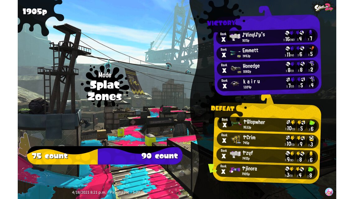 | Mode | Splat Zones - Private Battle | |||||||||||||||||||||||||||||||||||||||||||