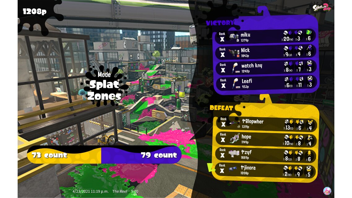 | Mode | Splat Zones - Private Battle | ||||||||||||||||||||||||||||||||||||||||