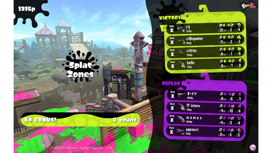 | Mode | Splat Zones - Private Battle | ||||||||||||||||||||||||||||