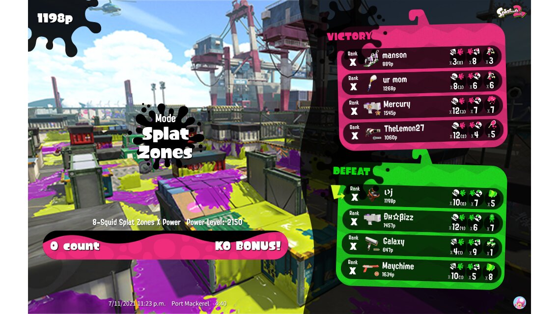 | Mode | Splat Zones - Ranked Battle | |||||||||||||||||||||||||||||||||||||