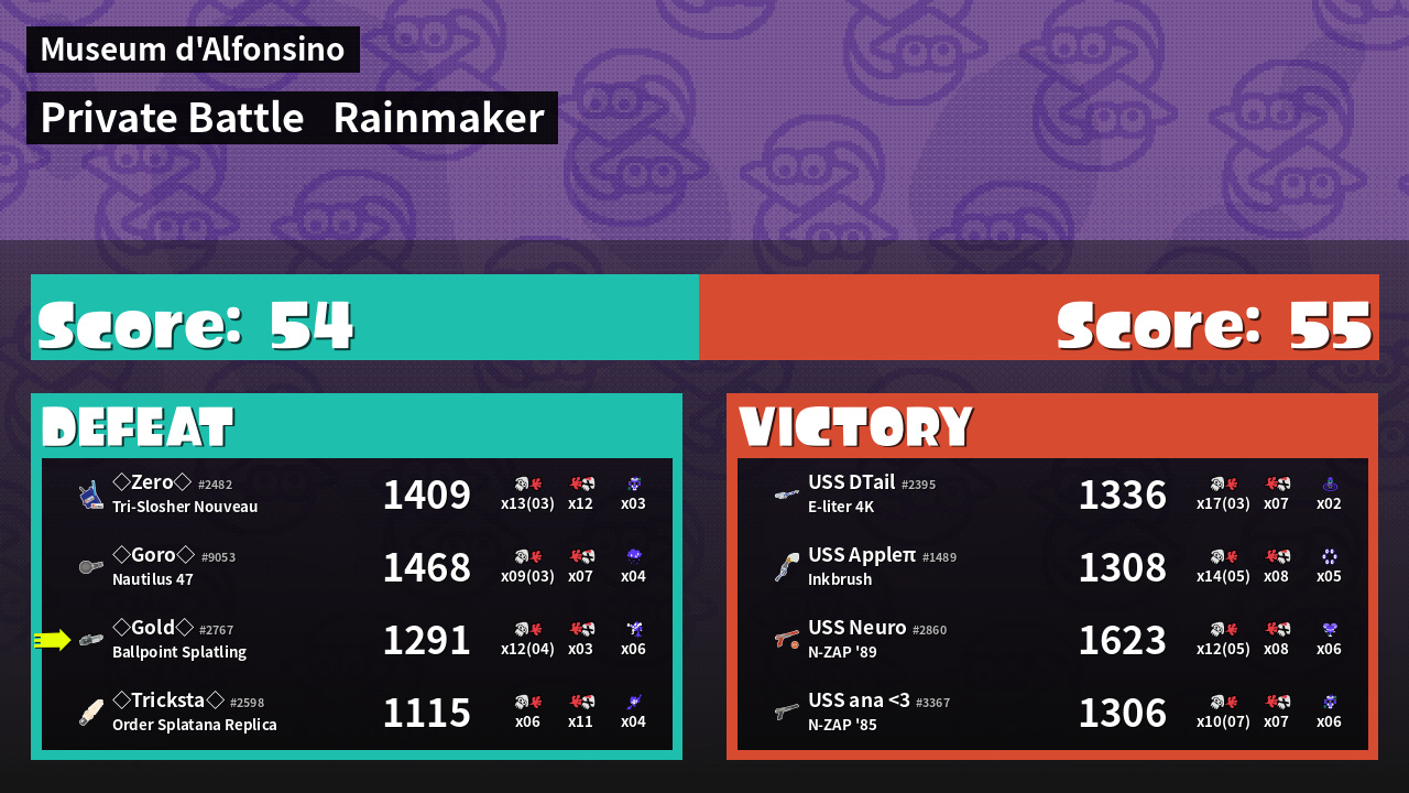 Name | Weapon | Inked | ![]() |