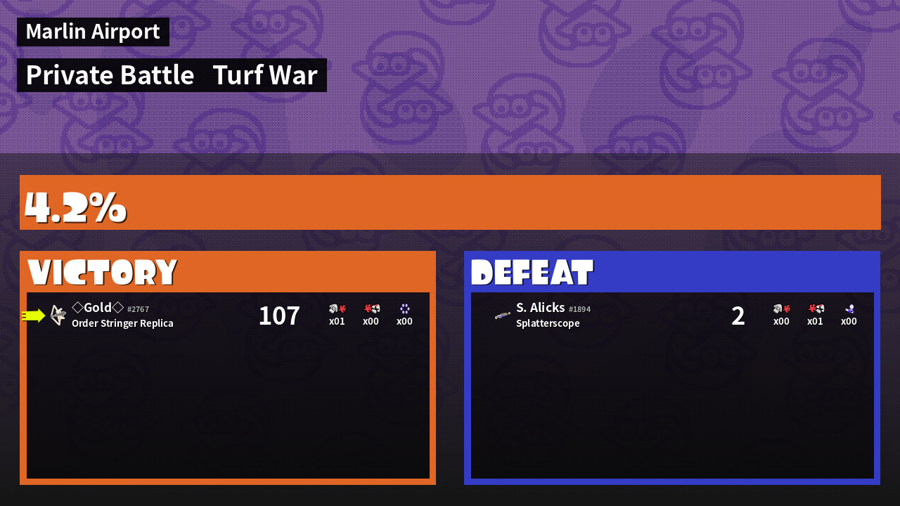 Kills / Deaths | 1 + 0 / 0 > Kill Ratio: 99.99 | ||