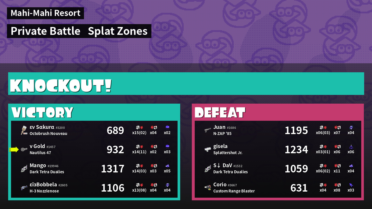 Name | Weapon | Inked | ![]() |