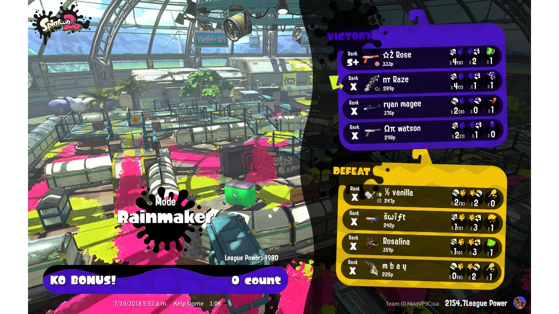 | Mode | Rainmaker - League Battle (Twin) | |||||||||||||||||||||||||||||||