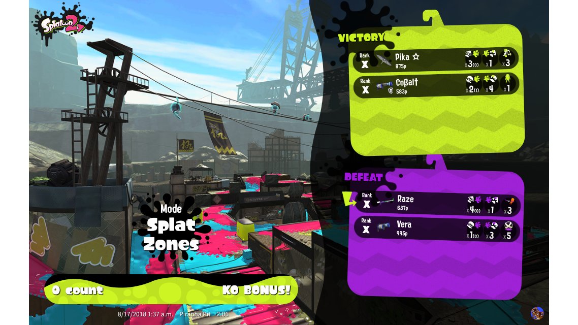 | Mode | Splat Zones - Private Battle | ||||||||||||||||||||||||||||||||||