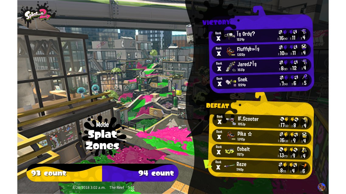 | Mode | Splat Zones - Private Battle | ||||||||||||||||||||||||||||||||||