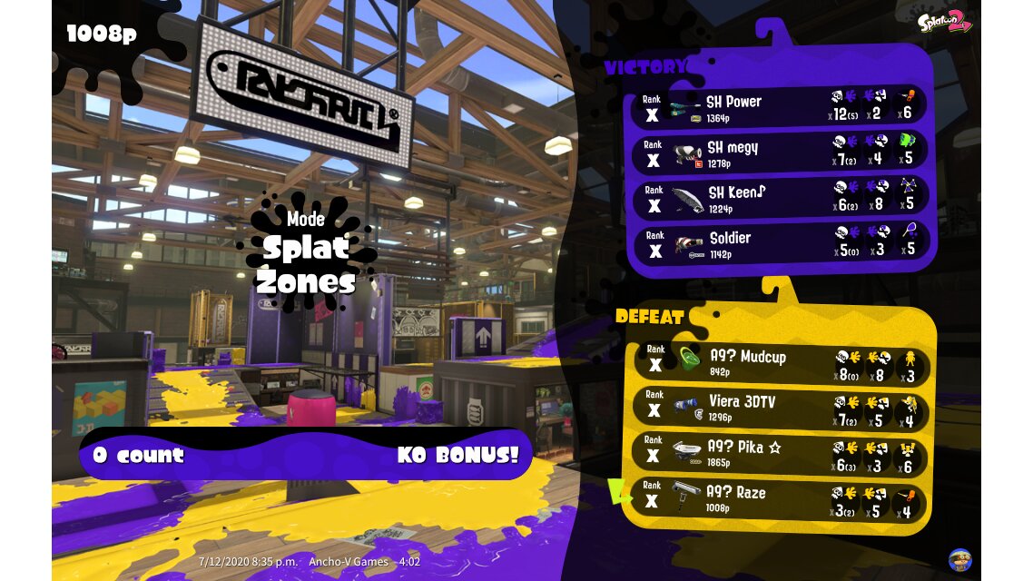 | Mode | Splat Zones - Private Battle | |||||||||||||||||||||||||||||||||||||