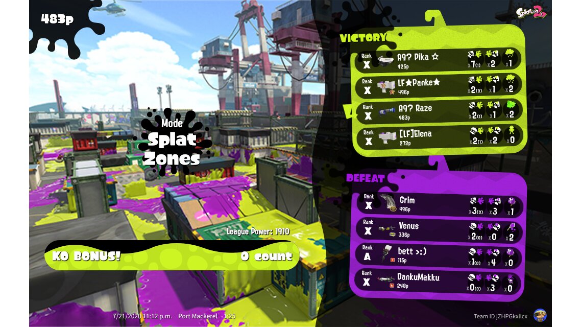 | Mode | Splat Zones - League Battle (Twin) | ||||||||||||||||||||||||||||||||||