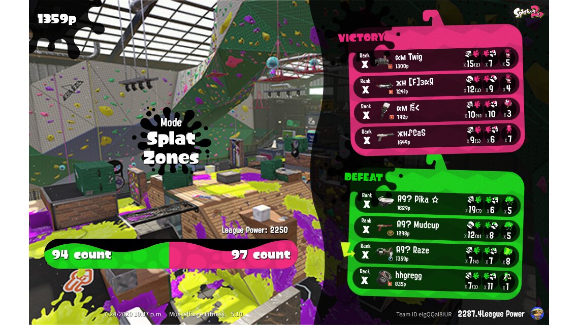 | Mode | Splat Zones - League Battle (Quad) | |||||||||||||||||||||||||||||||||||||