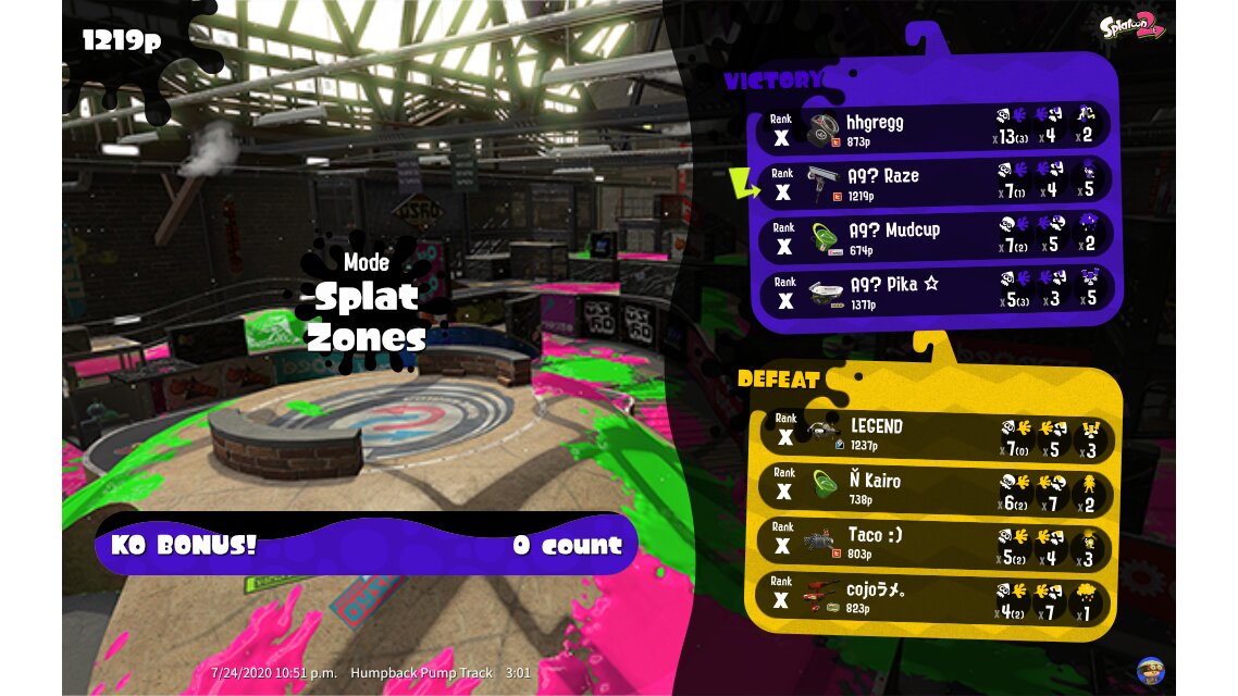 | Mode | Splat Zones - Private Battle | |||||||||||||||||||||||||||||||||||||