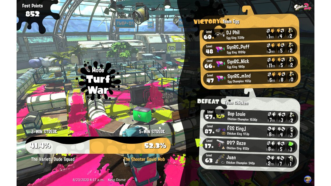 | Mode | Turf War - Splatfest (Team) | |||||||||||||||||||||||||||||||||||||