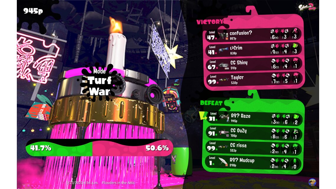 | Mode | Turf War - Private Battle | |||||||||||||||||||||||||||||||||||||
