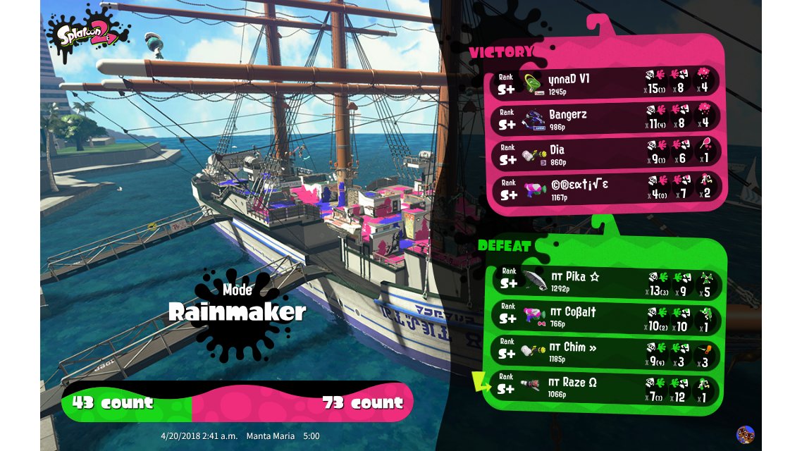 | Name | Weapon | Level | Rank | Inked | k+a/sp | k/d |