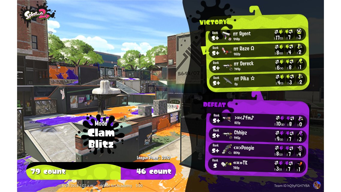 | Name | Weapon | Level | Rank | Inked | k+a/sp | k/d |