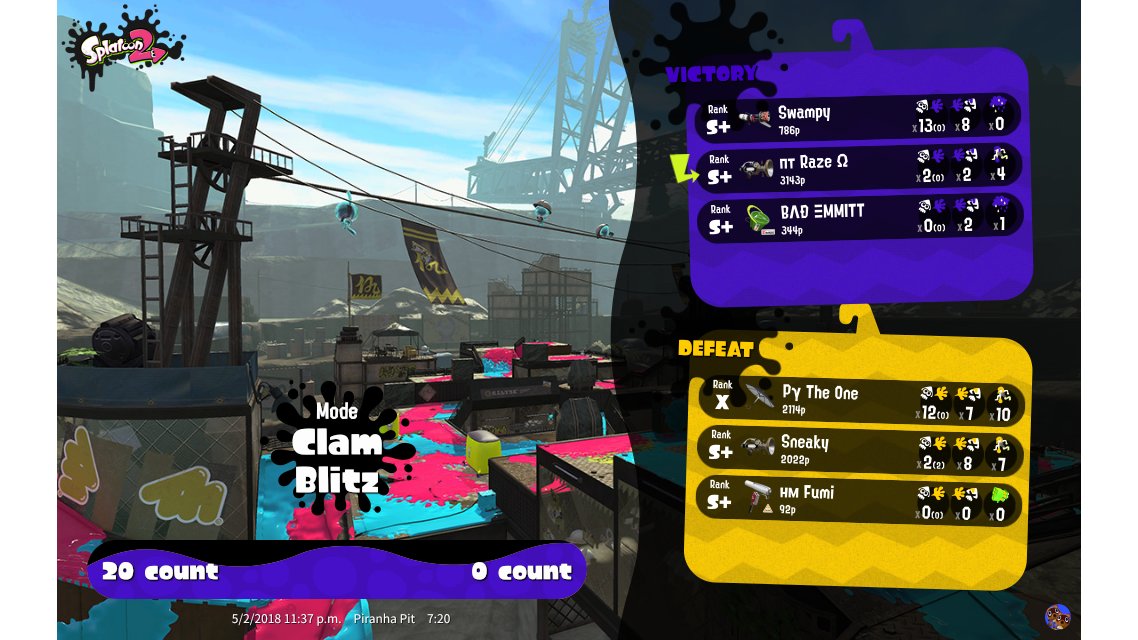| Mode | Clam Blitz - Private Battle | |||||||||||||||||||||||||||||||