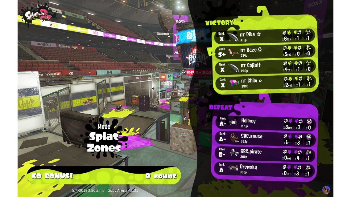 | Mode | Splat Zones - Private Battle | ||||||||||||||||||||||||||||||||||