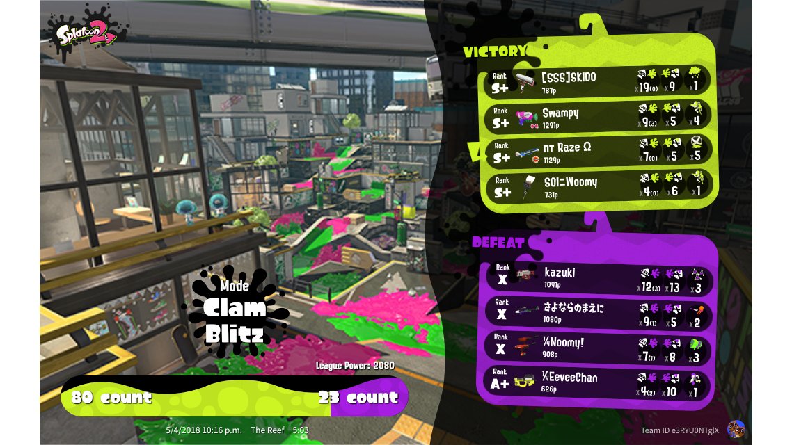 | Mode | Clam Blitz - League Battle (Twin) | ||||||||||||||||||||||||||||||||||