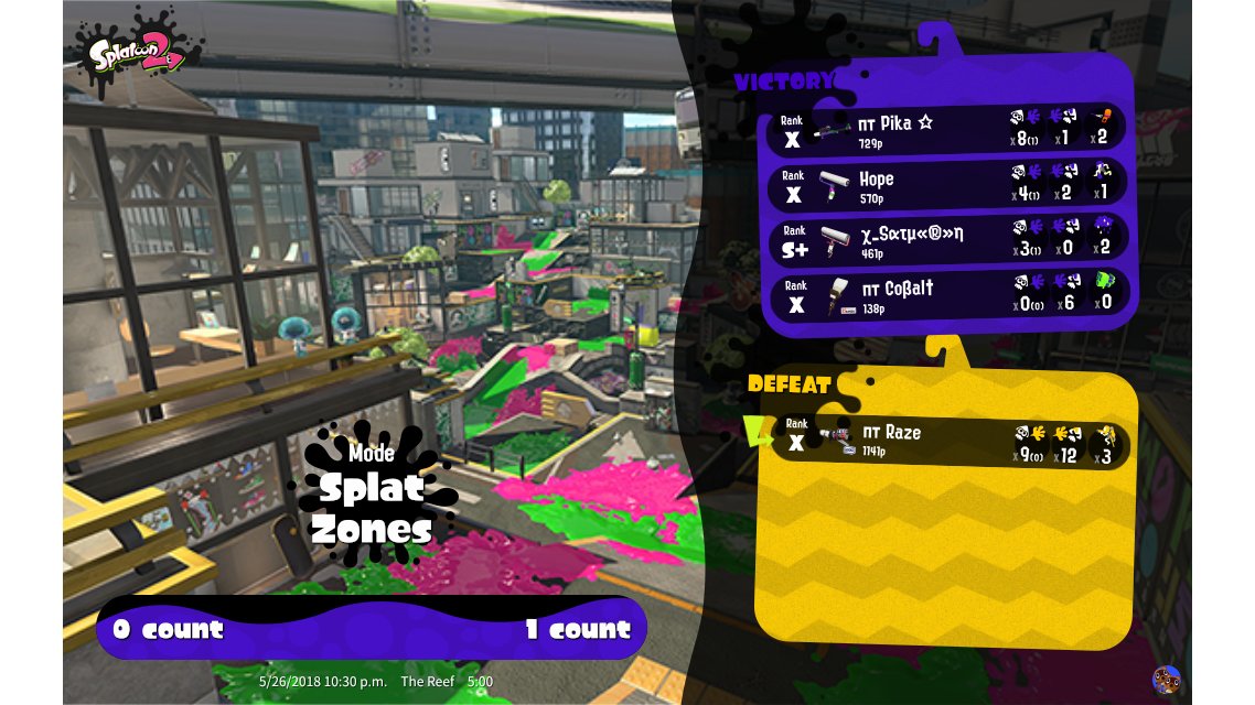 | Mode | Splat Zones - Private Battle | |||||||||||||||||||||||||||||||