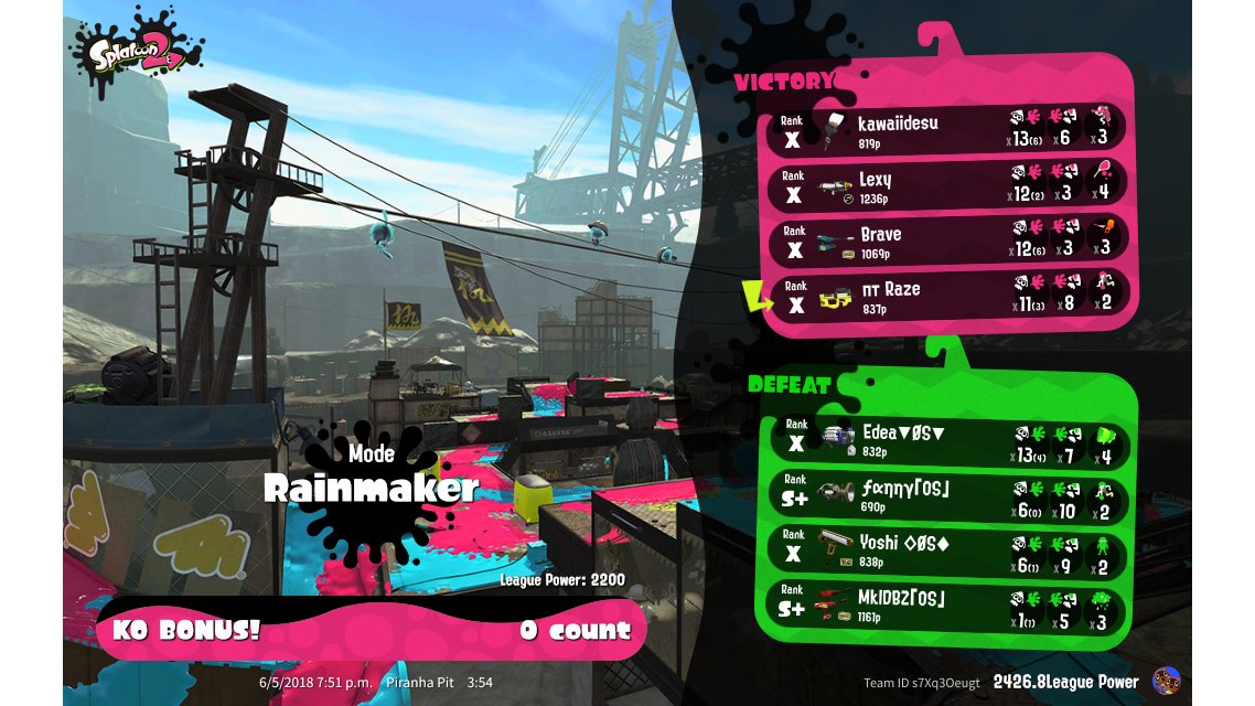 | Mode | Rainmaker - League Battle (Quad) | |||||||||||||||||||||||||||||||
