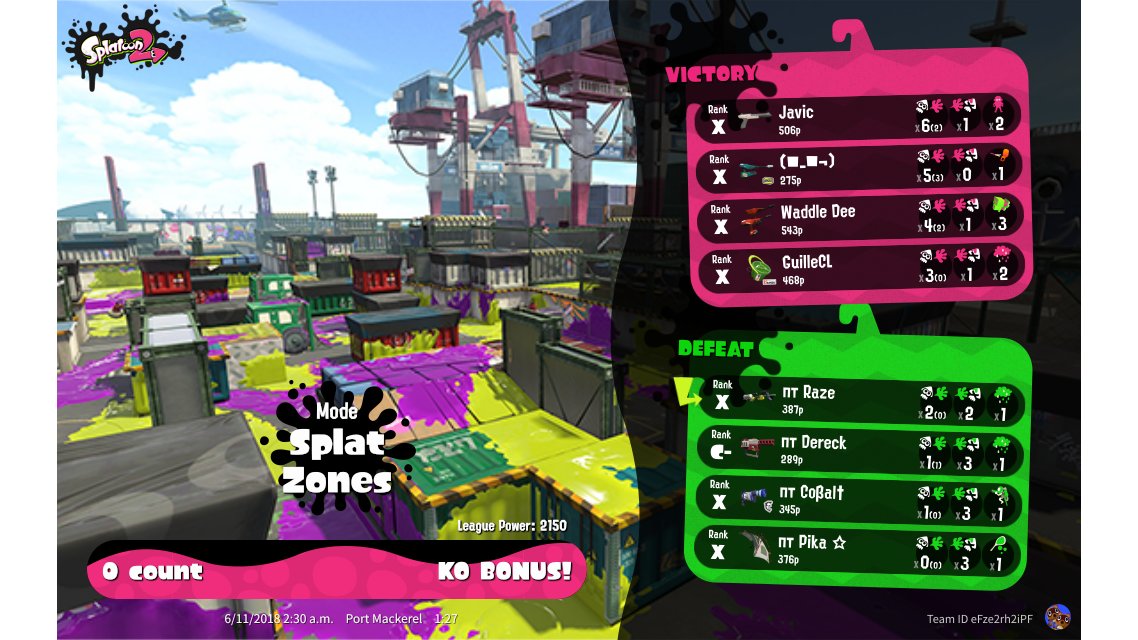 | Mode | Splat Zones - League Battle (Quad) | |||||||||||||||||||||||||||||||