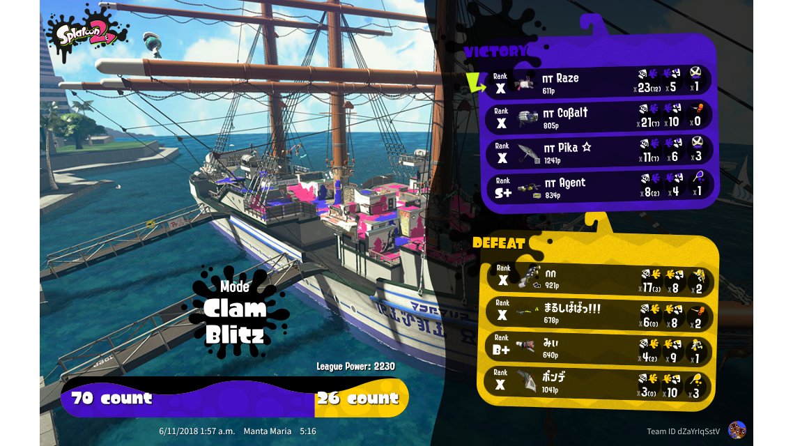 | Mode | Clam Blitz - League Battle (Quad) | |||||||||||||||||||||||||||||||