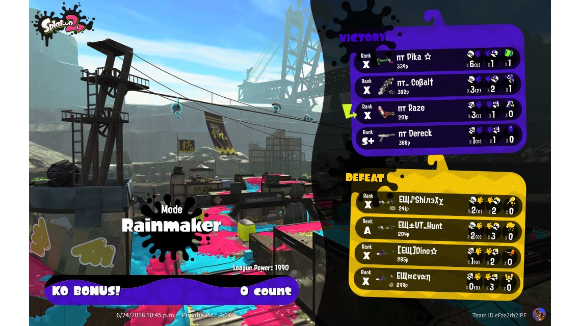 | Mode | Rainmaker - League Battle (Quad) | |||||||||||||||||||||||||||||||||||||