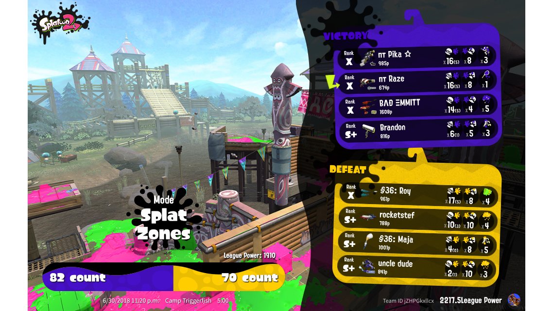| Mode | Splat Zones - League Battle (Twin) | ||||||||||||||||||||||||||||||||||