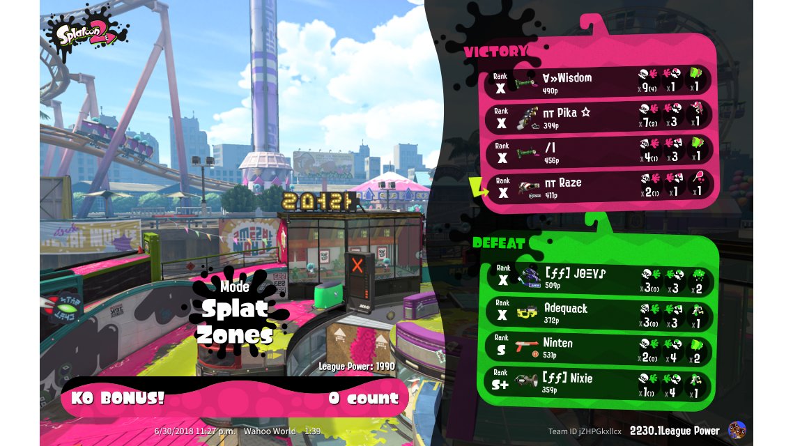 | Mode | Splat Zones - League Battle (Twin) | ||||||||||||||||||||||||||||||||||