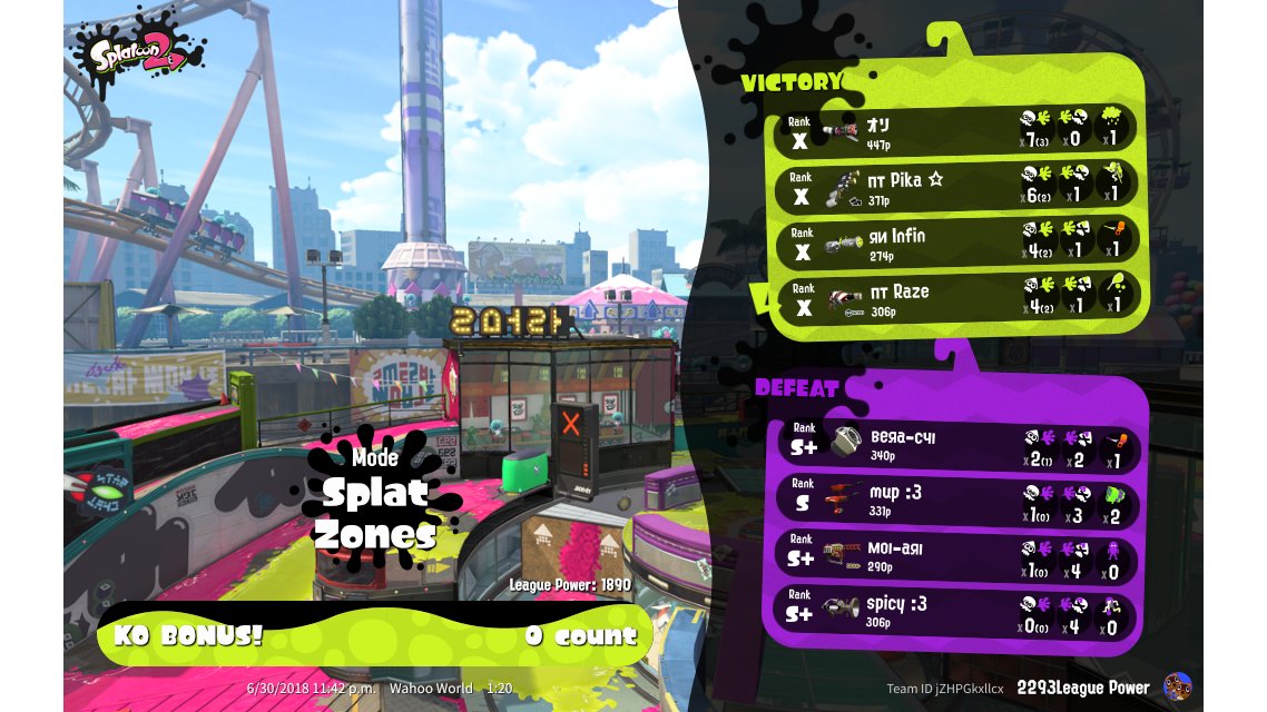 | Mode | Splat Zones - League Battle (Twin) | ||||||||||||||||||||||||||||||||||