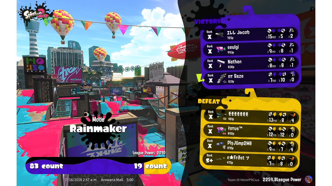 | Mode | Rainmaker - League Battle (Twin) | |||||||||||||||||||||||||||||||||||||