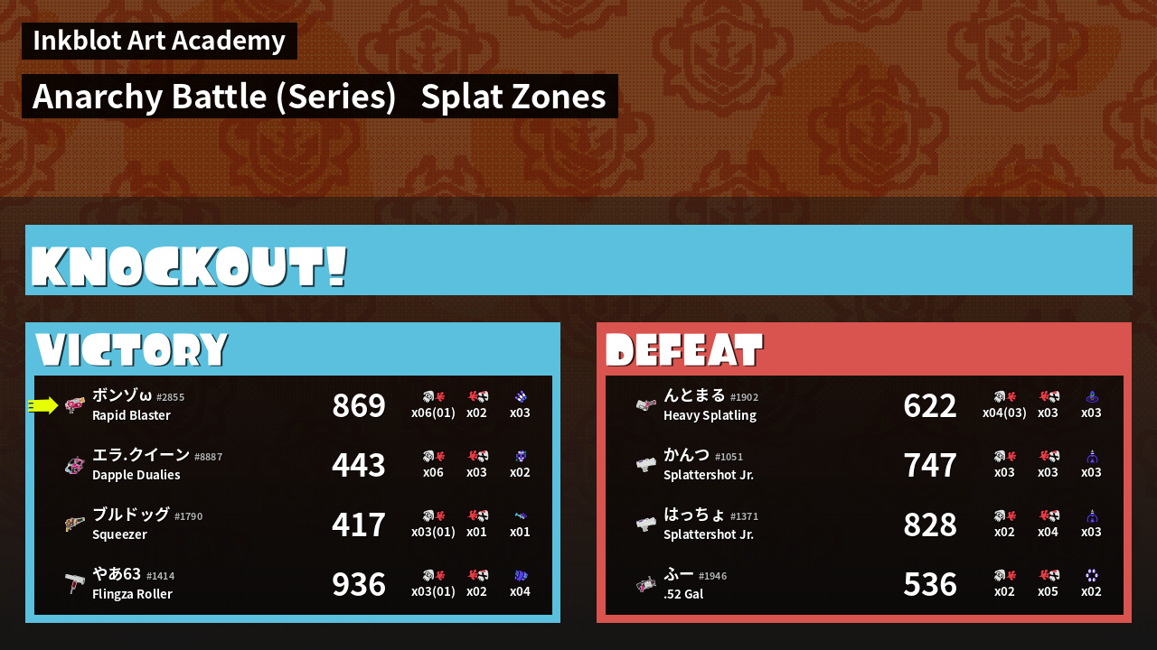 | Mode | Splat Zones - Anarchy Battle (Series) | ||